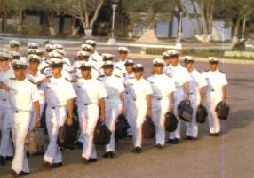 Seguidamente, dada la hora y apetito, los miembros del Consejo fueron invitados a compartir el almuerzo con el Batallón de Cadetes, pero los Capitanes de Navío, el “pollo” Ricardo García y Jesús Caro tenían temor que esta amable y opípara invitación estuviera precedida, como se acostumbraba antaño, de una o dos vueltas al último poste, pero gracias a la oportuna sugerencia del cargaladrillos Jorge Serpa, quien les dijo que estuvieran tranquilos porque él, como persona previsiva, les podía hacer extensiva una “excusa del servicio” emitida por el enfermero Pinto, que evitaría la sudadita antes del almuerzo.