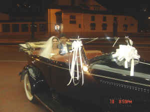 Carolina en su elegante coche nupcial dirigiéndose hacia el Hotel