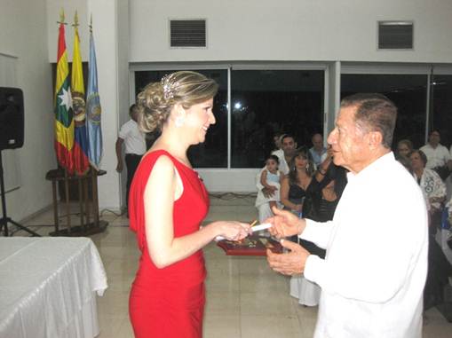 El VA Guillermo Uribe Peláez entrega la placa “Ciudadana Ejemplar� a la Dra. Carolina Calderon G de Molano. Por sus cargos donde siempre ha buscado el bien de Cartagena y su comunidad.