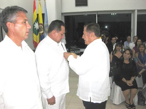 El gobernador Eduardo Verano le impone la distinción, lo acompaña Eduardo Jesurun