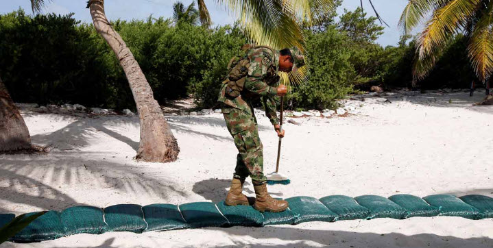 Hace 18 meses, cuando el infante Daniel Riso salió de Barranquilla a iniciar su vida militar, nunca imaginó que en su primer trabajo solo le permitirían jugar fútbol con una bola de trapo, que el único oficio sería barrer todos los días metros de playa, y menos que no podría bañarse en ella, pese a la tentación de disfrutar de un paisaje paradisiaco de aguas verdes cristalinas.