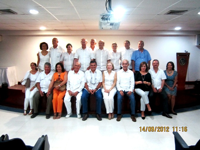 El muy apreciado Cyber-corresponsal en Cartagena CR IM Chepe Calderón, su adorable esposa madame Marie Laure y el Valm Guillermo Uribe, presidente de ACORE Cartagena