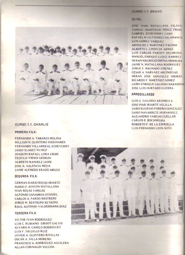 En la foto de izq. a derecha: VICENTE CUERVO, CN JUAN JIMENEZ, CN LUIS FDO MARQUEZ, ERNESTO PORRAS, ERNESTO ROZO, CARLOS CUELLAR, CARLOS ORDOÑEZ, ARMANDO CERON, JOSE JIMENEZ, MIGUEL RANGEL, CLAUDIO YEPES, TC CAMILO LANDINEZ, CN JAIME ESCOBAR, ANDRES SANDOVAL, FELIPE PRIAST, GUILLERMO DULCEY, CN RAMIRO RODRIGUEZ Y CN JUAN PABLO ARBELAEZ.