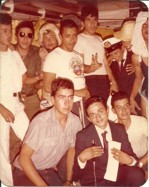 Como no puede faltar la foto del electo total podemos identificar a CODINA, GALINDO, ENANO RODRIGUEZ, MOLINARES, TABARES, AMAYA, otro RODRIGUEZ, ECHEVERRY, ROJAS y se me escapan dos a la derecha que no pude identificar por su pinta de "Reinas" pero que ambos alcanzaron altos grados entre los navales y la Infantería de marina.