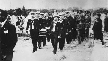 Sepelio de los caídos en combate El día 15 de Diciembre, 320 oficiales y tripulantes, incluyendo al Capitán Langdorff , bajan a tierra para enterrar a los muertos.