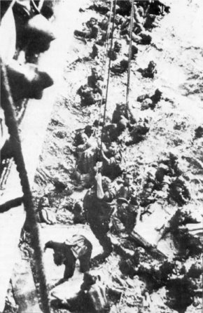 Cuando tan sólo 85 náufragos, habían conseguido subir a bordo del crucero, de repente éste puso sus máquinas avante toda y se alejó a toda máquina del lugar dejando a más de 700 hombres sobre las aguas. El capitán del DORSETSHIRE alegó que "se había visto el periscopio de un submarino alemán". El destructor MAORI había rescatado a otros 25 antes de alejarse a toda máquina también. Ningún submarino alemán se encontraba allí en aquel momento. Los hombres quedaron sobre el mar solos. Uno tras otro fueron sucumbiendo al frío y murieron congelados.