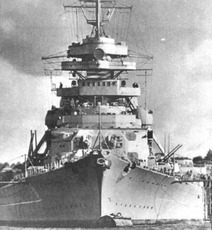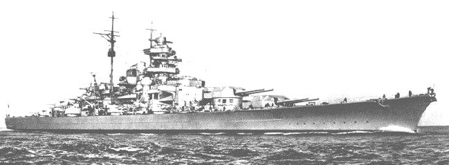 La nave desplazaba a carga estándar 45.170 ton. y a plena carga sobrepasaba ampliamente las 50.000 ton. La velocidad era de 30,1 nudos. Medidas: Eslora 251 m. Manga 36 m. Calado 10,2 m. Armamento: 8-380 mm. 12-150 mm. 16-105 mm antiaéreos. 16-37 mm antiaéreos. 12-20 mm antiaéreos. 1 catapulta y 6 hidroaviones Arado Ar-196. Blindaje: máximo vertical de la cintura acorazada 320 mm y horizontal máximo de la cubierta protectora 100 mm. Dotación: 2.100 hombres (en el momento de su hundimiento llevaba a bordo más de 2.200 marinos).