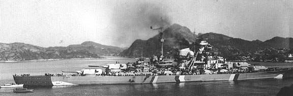 A las 02:00 horas del 19 de mayo, el BISMARCK abandonaba el fondeadero de Gotenhafen y zarpa rumbo a Noruega. Tras pasar por el Korsfjord, la nave recaló en el Grimstadfjorf, donde el 21 de mayo a las 13:15 horas fue fotografiado por un Spitfire británico. La Home Fleet (Flota metropolitana británica) fue puesta inmediatamente en estado de alerta.